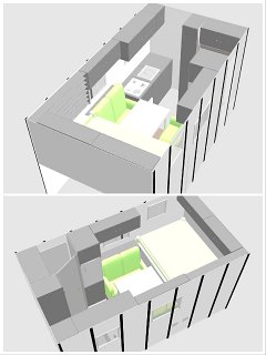 Nachdem wir uns für den Mercedes Sprinter entschieden hatten, war es an der Zeit, die genauen Maße des Kofferaufbaus zu nehmen, um mit der Planung des Innenausbaus zu beginnen. Der Koffer ist 4,20 m lang, 2,24 m breit und 2,24 m hoch. Jede Menge Platz sollte man meinen. Nachdem Carina ein 3D Modell angefertigt hatte und die ersten Ideen in Entwürfen umgesetzt waren, wurde klar, dass die Wohnfläche nicht gerade klein, aber auch nicht riesig ist. Da heißt es, den Platz intelligent zu nutzen und optimale Lösungen zu finden.
